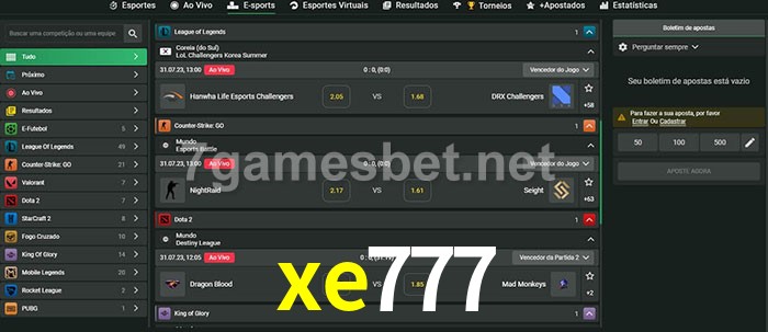 O xe777 oferece uma grande seleção de opções de apostas em e-sports com probabilidades competitivas